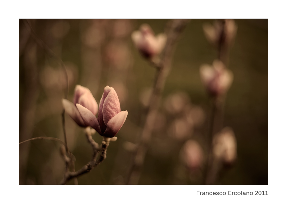 Ma che delicatezza! Mi sbaglio o c'è un viraggio? Molto indovinato, oppure colori molto indovinati in partenza... Mi piace, uso molto attento della profondità di campo.
