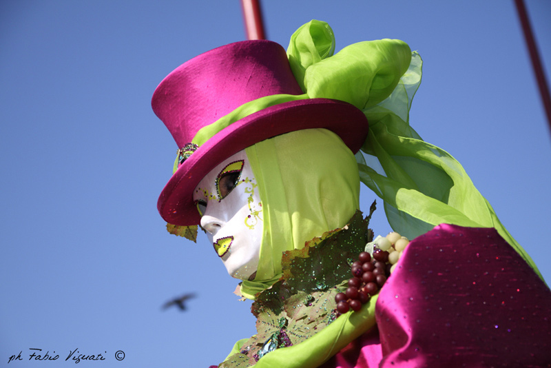 inoltre contribuiscono in questa direzione altri piccoli particolari quali il palo che spunta sopra il cappello e l'altro (da clonare...) nell'angolo alto destro, il punto di ripresa che non permette di visualizzare gli occhi della maschera e la posa della stesa che non è tra le più felici....