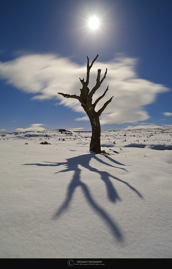 mi onoro di essere il primo a lasciare un commento su questo lavoro d'artista. ci hai raccontato sommariamente come è nato lo scatto ma sotto a quelle due righe c'è tutta la fatica ed il piacere di fare fotografie in luohi ostili ma di una bellezza struggente. l'albero, la sua ombra sulla neve bianchissima, la nuvola in movimento a risaltare l'immobilità dell'albero e la luna che tutto abbraccia e rischiara, ecco è tutto in perfetta armonia.