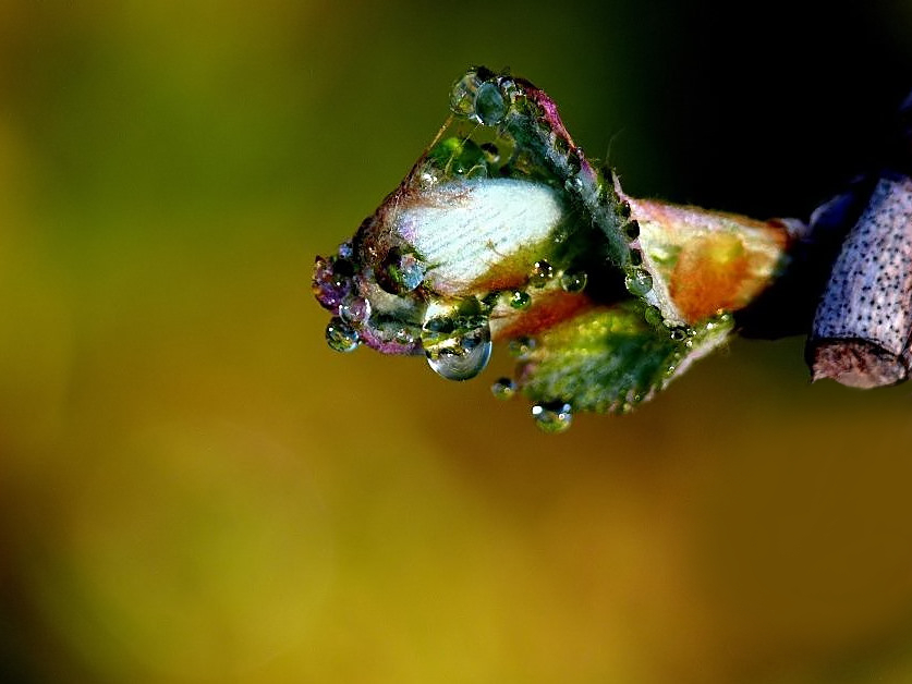 La goccia centrale è molto bella e riflette tutto il paesaggio.
