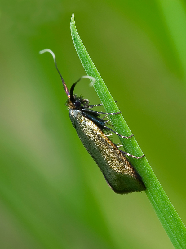 E' una Adela reamurella, l'ho fotografata ieri ma ancora non l'ho postata. Ha le antenne lunghissime. Questa sua immagine è miolto ben eseguita, hai privilegiato il corpo e hai fatto bene, io ho cercato di comprendere tutte le antenne e il soggetto è risultato più piccolino. Ottima! Wink