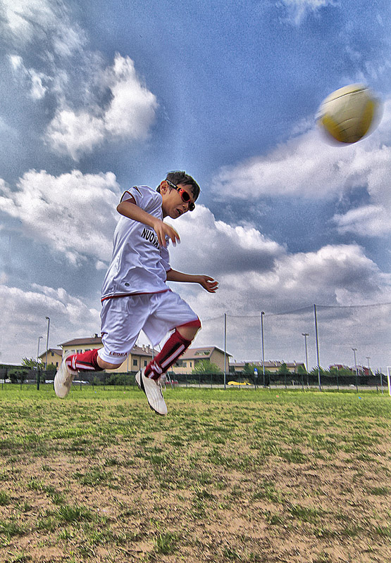 Bel momento colto, bel punto di ripresa, bello il mosso della palla tuttavia ben leggibile.