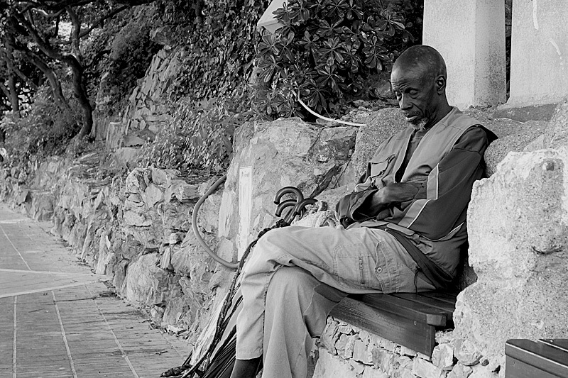| Mario Zacchi ha scritto: | | Ritratto, contestualizzato, di un uomo che dorme. L' uomo è un nero, pare un po' in età ed ha con sé degli ombrelli (e qualcosaltro) che sembrano tanti per una persona sola. E' un venditore ambulante? La panchina è in un ... luogo all' aperto: questo è tutto il contributo che il contesto, al quale hai sacrificando parte delle figura, dà. Tutto sommato meglio un ritratto a figura intera, che ponga l 'accento sulle particolarità della persona, perché tutto il resto della foto non dice nulla di rilevante e, soprattutto, nulla che giustifichi questo taglio sgraziato. |