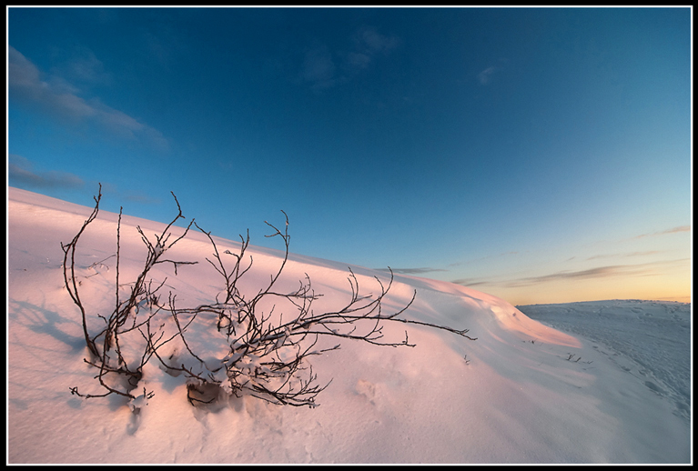 Ottimo il contrasto e la gestione del colore. Mi piacciono i riflessi magenta del sole tardo-pomeridiano che si riflettono sulla neve; bellissimo il colore del cielo ed i riflessi aranciati sullo sfondo.