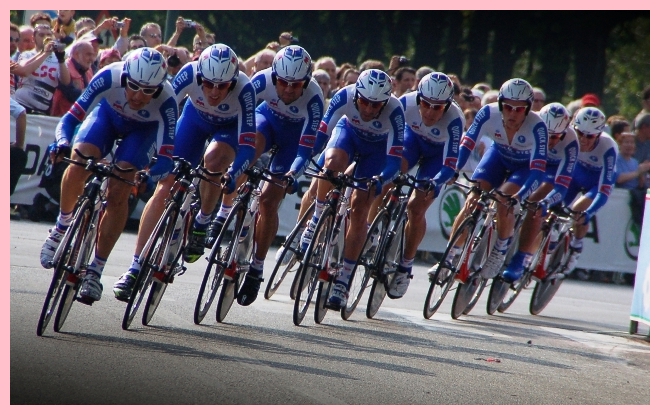 mi piace molto il taglio che enfatizza le linee diagonali della posizione dei ciclisti,