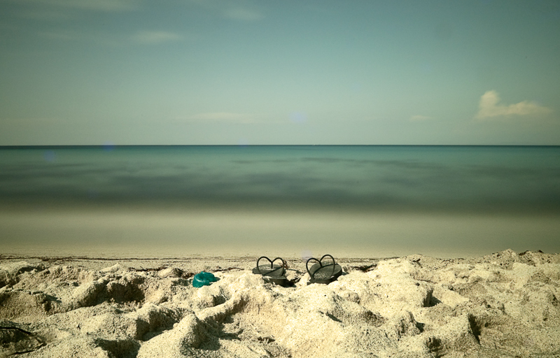 Le infradito mi danno l'idea di due cuori che sono persi nell'osservare il mare e la sua immensità...