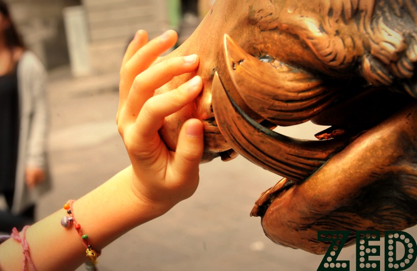 Il contatto tra la delicatezza della mano e le fauci del bronzo suona molto come "la bella e la bestia" e forse, inconsciamente, era pure questo il tuo intento...