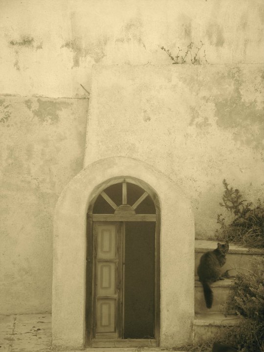 Ero su un tetto in Grecia, è una porticina sul tetto di una casa, che ha attirato la mia attenzione perchè da li è uscito il gatto.. Attorno c'erano altri tetti, quindi l'inquadratura non sarebbe potuta essere più ampia orizzontalmente, o spostata..