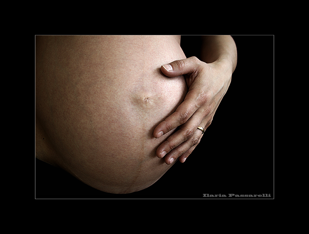 La parte bassa della foto,in realtà non è tagliata con photoshop...lo sfondo era nero e la "modella" portava un paio di leggins neri accuratamente arrotolati sotto al pancione,proprio per metterlo in evidenza...non immaginavo che la parte scura distogliesse così tanto lo sguardo dello spettatore...non posso nemmeno riprovare a scattare la foto...ormai è nata!