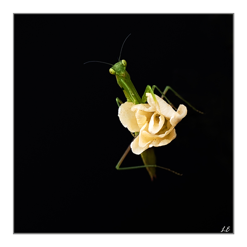 Mi piace molto. Anche il contrasto mi sembra adeguato. Una sola domanda, ma vivi con una mantide ammaestrata in casa?? Ok! Ok! Wink