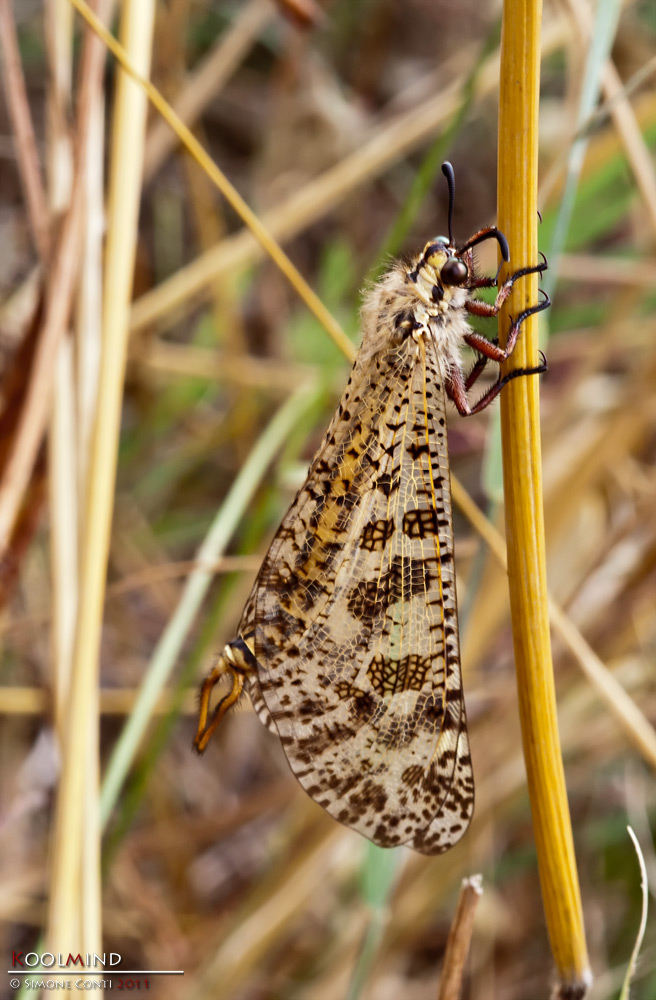 Si tratta di un parente della formica leone, ma non ne avevo mai visti di così grossi. Con l'erba più bassa e meno grilli magari vi regalavo una foto decente... mi spiace sempre abbassare il mio standard, visto che già di suo non è che sia così alto.