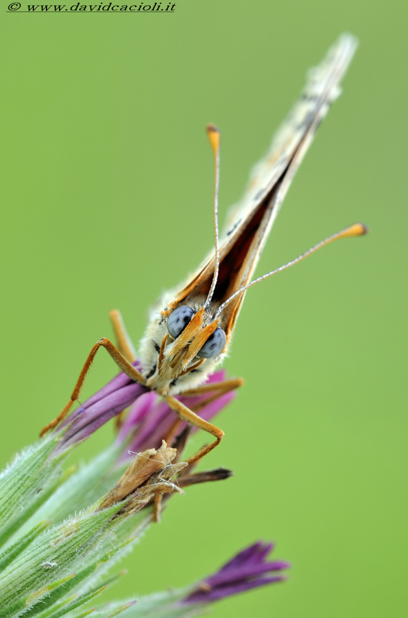 Ottimo scatto David, forse come qualcuno prima di me ti ha fatto notare la parte del posatoio del fiore sfuocato distoglie lo sguardo dal punto d'interesse primario, gli occhioni della bella Melitaea...