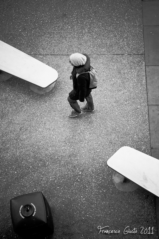 Gradevole, con un filo in ritardo nel click, direi, rispetto alla scopo di ottenere un equilibrio pressoché perfetto tra le masse. Solita osservazione oziosa e limitata al post web, dato che nella realtà si suppone tu non ce la metta: la firma confonde un po', turbandolo, questo equilibrio (e questa pulizia) piuttosto delicato. La postura della figura è piacevole. Il suo passo ben staccato è bello a vedersi. Il fatto che non stia facendo nulla di significativo sottolinea, senza incertezze, l' identità dell' immagine come come prodotto di una visione compositiva, piuttosto che come flash di momento di vita; questo porta alla foto una bella coerenza d' insieme. _________________ Belle foto. O perlomeno belle idee -> |