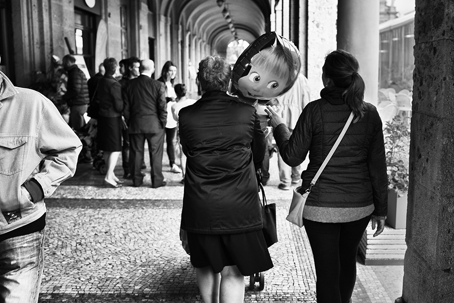 Simpatica street,bello il bn.Proverei,partendo dalla seconda proposta,un 4/3 orizzontale con taglio americano appena sopra il il ginocchio delle due donne.