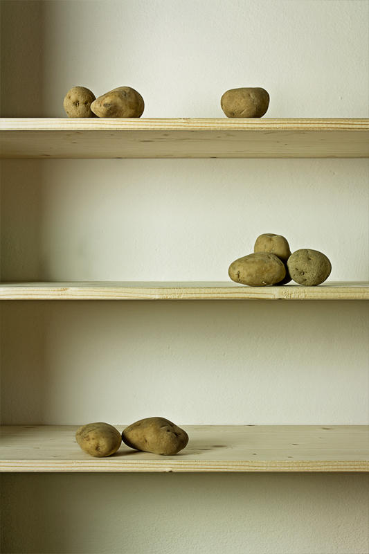 Sui gusti personali non si discute, però tutta questa enfasi... per quattro patate su degli scaffali... al massimo, per conto mio, posso dire che sia uno still life accettabile, semplice questo senz'altro, ma niente di più.
