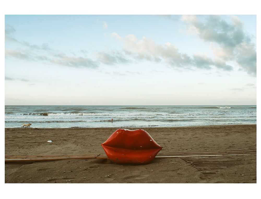 Una foto mauriana nel più profondo: letteralemnte al bacio, con qualche nota persino surreale, ma con la corsa del cagnone in libertà a darle respiro di piena realtà.