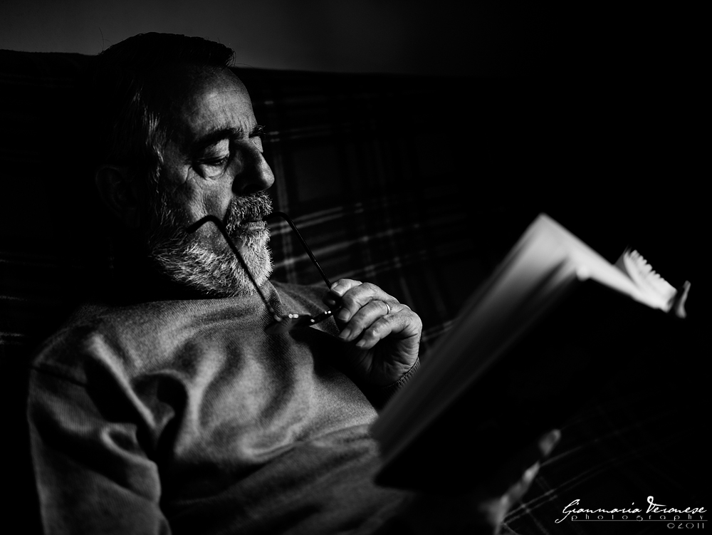 Preso dalle parole che gli occhi decifrano, fino a dare la sensazione di una totale dimenticanza dell'obiettivo che inquadra.