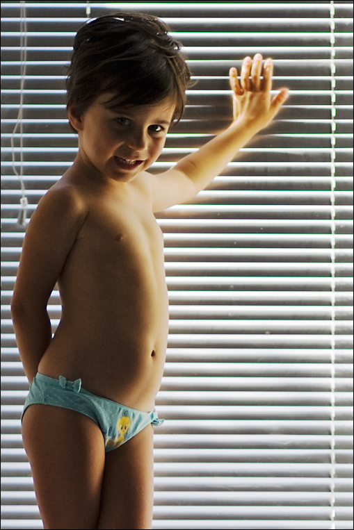 Interessante la gestione della luce e deliziosa l'espressione della modella.