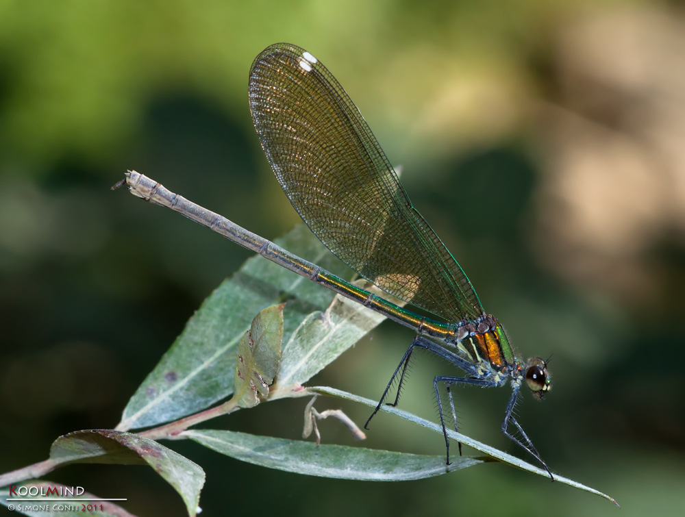 Calopteryx splendens ripresa in un momento, ehm, un po' intimo.