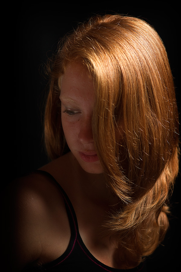 mi piace molto il gioco di ombre sulla spalla e sul petto in contrasto con la luce sui capelli. Il pannello ha riflesso bene la luce sui capelli. Peccato solo che l'occhio destro della modella non è chiaramente in vista. Uno sguardo diretto verso l'obiettivo avrebbe intrigato di più. Comunque la foto mi piace molto. Bravo Ok!