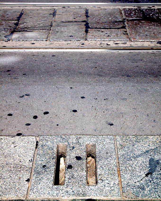 | Tre strade, tre dimensioni, tre grigi colori di fondo , tre trame e macchie di petrolio, olio, "sangue nero"! Una "quasi antisliding doors", si potrebbero percorrere contemporaneamente ognuna con i suoi ostacoli, ognuna accogliendo una entità che ha la forza e il desiderio di rimanerci fino alla fine ma senza mai invadere il campo degli altri se stesso. L'unica strada per tentare un incontro, uno scambio, è quella del rivolo di "sangue nero" che deborda nelle tre direzioni, una via di fuga, pericolosa, difficile che, se non percorsa alla perfezione, conduce a fine corsa, fino a scomparire, evaporando, nelle due strette fessure. |