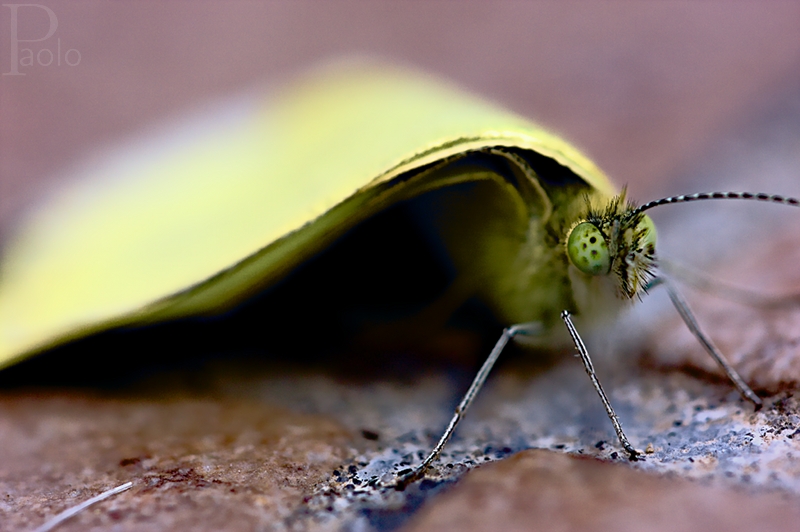 @Marcello, sono arrivato ad un accordo con i bruchi che mi devastano i vasi sul terrazzo, io gliene lascio uno e loro in cambio si fanno fotografare quando escono le farfalle. Ho scoperto che quando escono mica volano via subito, probabbilmente le ali non sono ancora in grado di reggere il volo, per cui se ne stanno lì ferme ed anche uno come me riesce ad avvicinarsi con la macchina fotografica. Questa era cascata per terra, si agitava (era rovesciata sulla "schiena"), per cui l'ho raddrizzata ma le ali le sono rimaste piegate così. Poi si deve essere sistemata perchè dopo un po' non l'ho più vista.