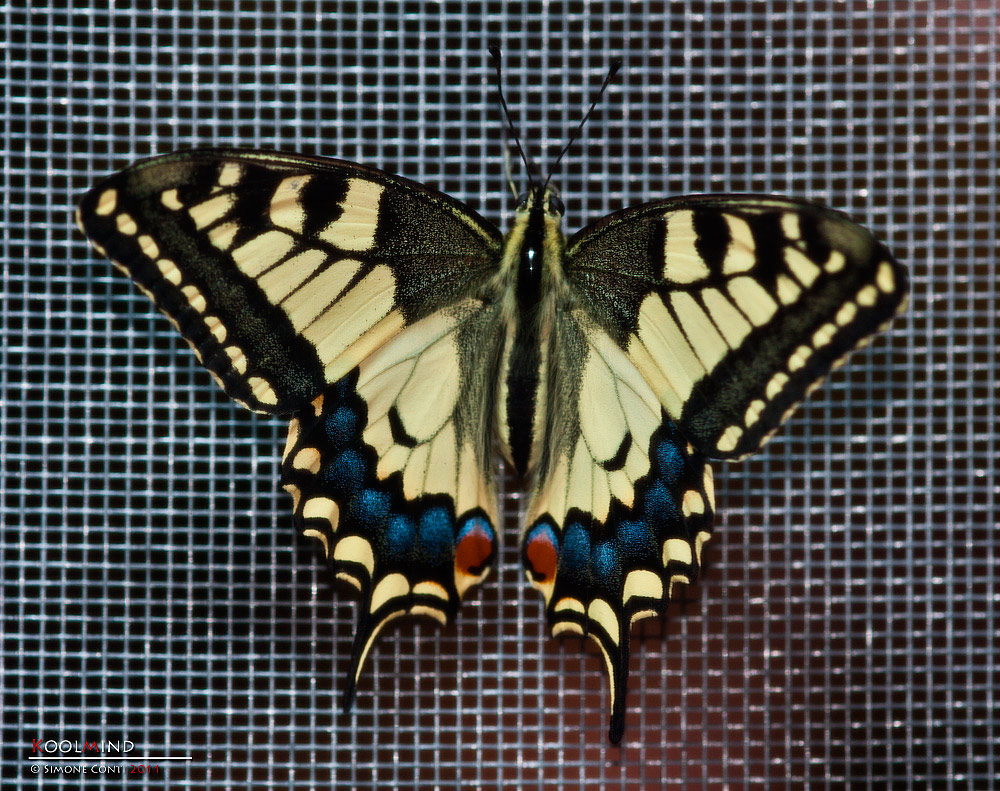 Foto estemporanea, scattata attraverso la rete della teca che contiene il mio macaone.