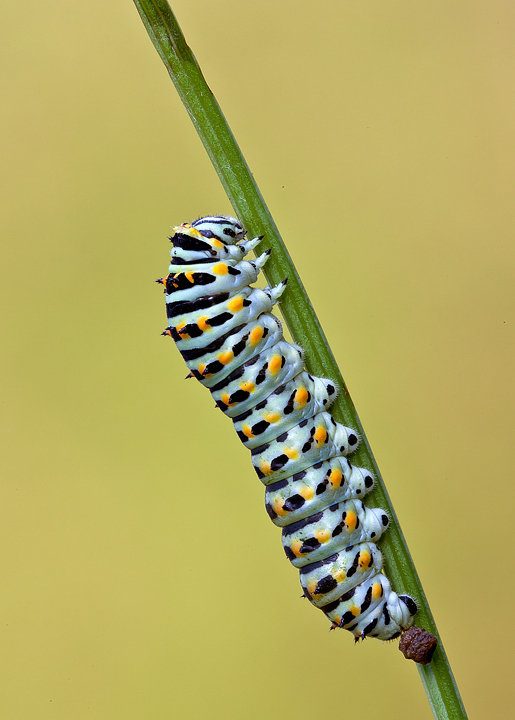 Il primo bruco di Macaone fotografato il 10 luglio. Ricordo che mi meravigliai per le sue dimensioni, molto inferiori a quelli che solitamente ho incontrato.