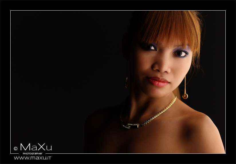 La composizione con spalle in diagonale è molta bella ed equilibrata, ma il taglio in orizzontale e la posizione di collana e orecchini mi trasmette come prima impressione più l'idea di una pubblicità di gioielli che di un ritratto, ma la pdc mi smentisce subito e quindi dovrebbe essere più un ritratto, ma l'incertezza rimane.