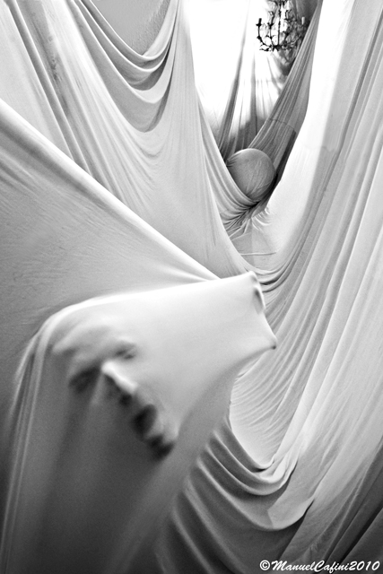 volevo per l'appunto farvi percorrere l'immagine fino alla luce bianca in fondo ma nello stesso tempo farvi osservare sia la sfera...(una sorta di uovo) sia tutto il lavoro coreografico fatto con un tessuto molto molto elastico e per finire "lo schiudersi dell'uovo" in primo piano... il dinamismo poteva esser dato o con un tempo lungo o con una sfuocatura...insomma ho cercato di farvi spaziare il piu possibile nell'immagine...senza renderla completament estatica con il classico tutto a fuoco... Smile