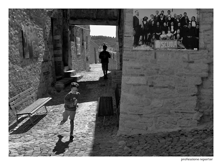 Ciao Claudio, la foto soffre della mancanza di una descrizione che non ho messo perché nella street tutti dicono che neanche il titolo bisognerebbe mettere (ma questa regola forse è troppo rigida). Elcito è un piccolo borgo ai confini del mondo che, come tanti, rischia di morire se non fosse che i figli, dopo tanti anni, sono tornati a vivere nel fine settimana nel luogo dei padri. Il filo della memoria familiare è talmente forte che hanno arredato il paese con le foto della vita di 100 anni fa. Quindi quella foto appesa è importante che ci sia.