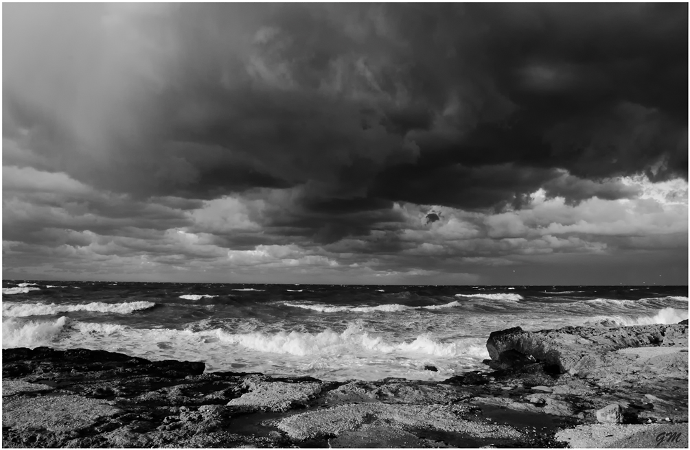Ciao, trovo che ci siano alcuni neri di troppo, alcuni scogli e in parte anche il mare; l'orizzonte pende a dx, basta poco per raddrizzare.