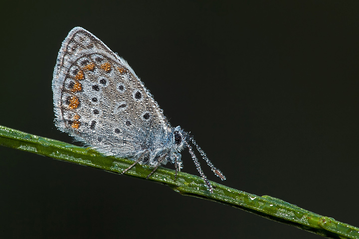 Le antenne abbassate(forse dovuto alla troppa rugiada) e lo sfondo cosi' scuro fanno sembrare il soggetto un po' triste.