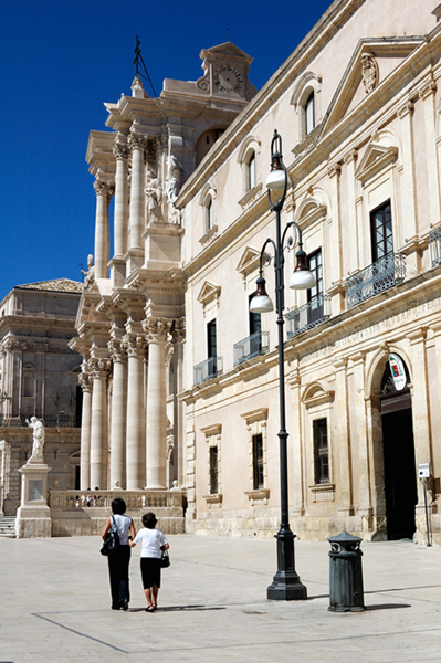 Se l'intenzione era di raffrontare le coppie umana/arredo urbano, forse le due donne avrebbero dovuto essere di altezza più diversa.