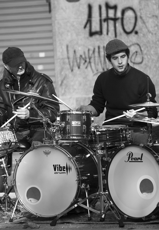 due musicisti in strada senza poter far capire l'evento mi lascia, dopo aver osservato la scena, con qualche dubbio sulla sua reale efficacia, mi riferisco al suo contenuto.