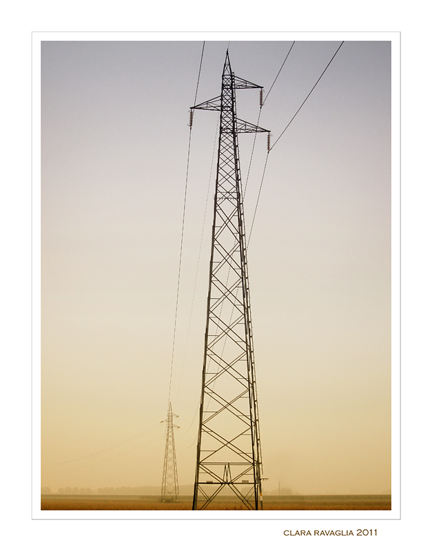 del disegno reticolare. La sottile striscia di terra, l'immenso cielo e il percorso dei cavi ben si sposano con il titolo.Che dire Clara? semplicemente e delicatamente bellissima.