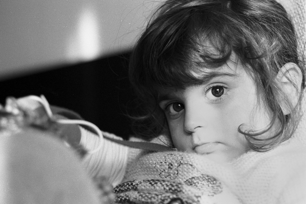 La parte in primo piano è un ginocchio che ha alzato, un istante prima che io scattassi. Cercavo proprio un taglio che diminuisse l'impatto di questo brutto sfuocato, concetrando l'attenzione sullo sguardo... ora mi sembra impossibile non esserci arrivato da solo