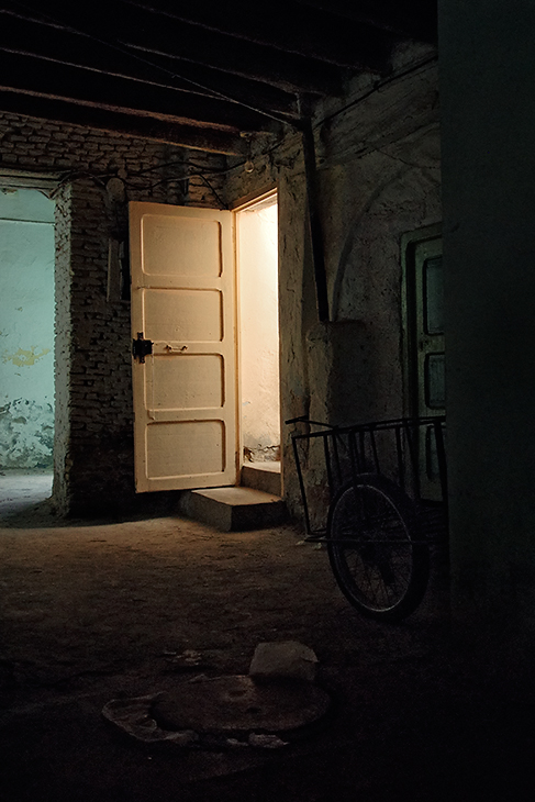 Porta aperta e ciclo posteggiato evocano in qualche misura l'uomo.. ma non è facile costruire tutta la critica su questo. Meglio, a mio avviso, vederla come uno scorcio urbano. Che ne pensi?