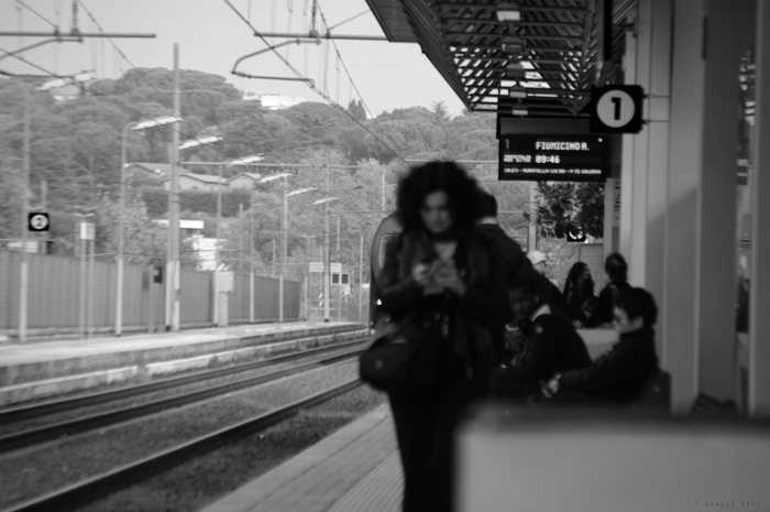 La foto invece, anche riguardata alla luce del tuo ultimo consiglio, lo é molto meno (efficace). Innazitutto perché il treno sta in effetti arrivando in stazione (anche se si vede a malapena) e niente nella scena lascia immaginare che sia in ritardo. Non si notano espressioni significative delle persone, oppure, che so, gente addormentata sulla pensilina o che bivacca in attesa del miraggio di un treno.