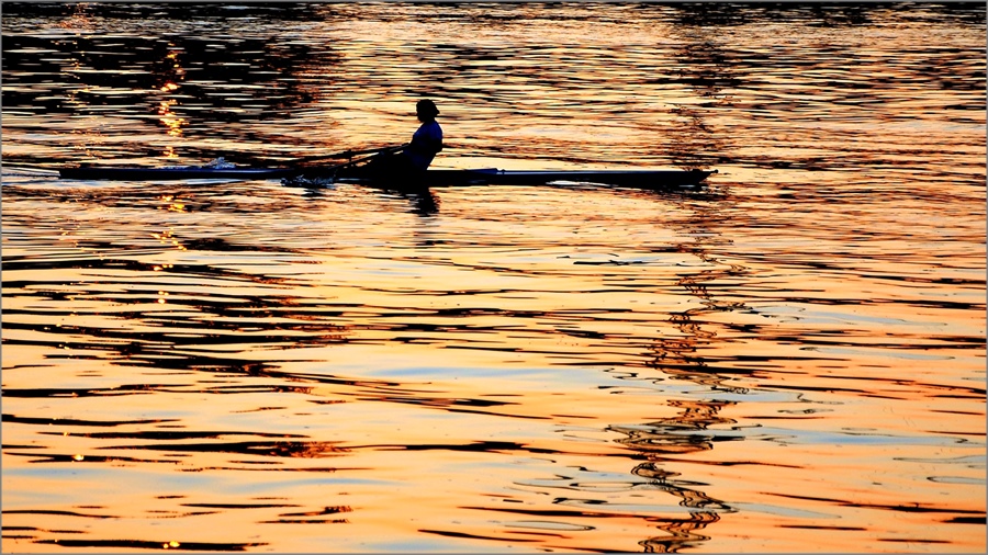 Il riflesso del sole al tramonto non mi aveva fatto notare subito la canoa,ho voluto riportare questa sensazione.Scattata all'interno del porto di Trieste.