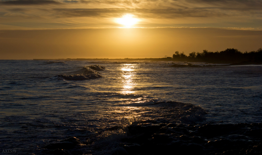 Piacevole la "s" formata dalle onde che guida lo sguardo verso il sole.