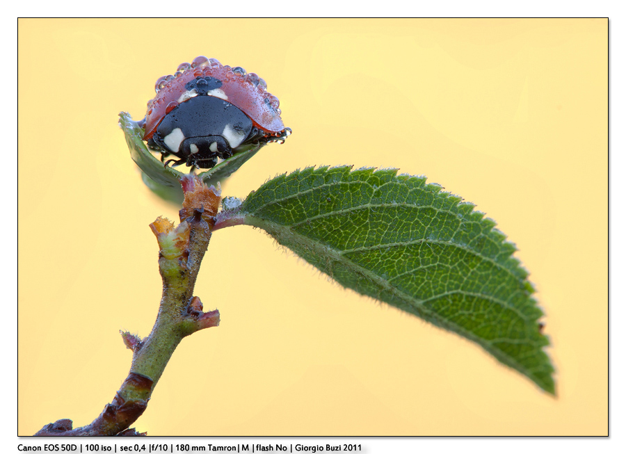 mi piace molto la compo e particolarmente dove hai collocato la coccinella.ho l'impressione che e' leggermente "buia" ma cio' potrebbe dipendere dal mio monitor.mi trovo d'accordo con Alberto sulla foglia sfocata quella (principale ).bellissimo lo sfondo illuminato .