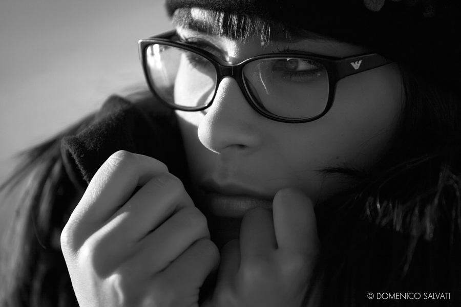Sempre difficile la partita con gli occhiali. Qui si riesce ad apprezzare la linea di fuga laterale dello sguardo, anche se probabilemnte la montatura e il carattere della luce rendono meno diretta la lettura degli occhi, affievolendone ...anche se di poco, l'intensità aspresiva.