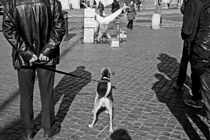 ps. forse il cane ha visto solo l'altro cagnolino vicino al tizio in equilibrio.