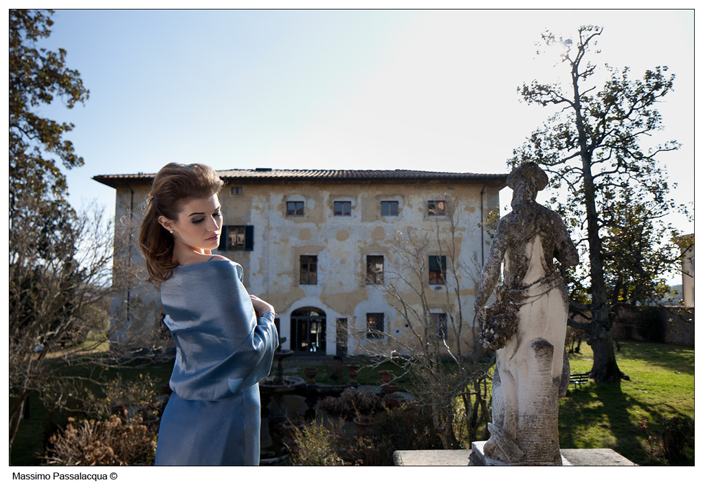 Per il resto, la casa sullo sfondo la considero un valore aggiunto all'immagine, la modella mi sembra staccare benissimo e sovrastare la statua grazie al maggiore contrasto, la simmetria aggiungere gradevolezza alla composizione.