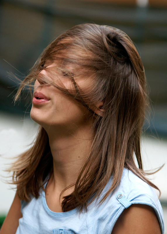 la forza della foto naturalmente sta nel momento in sè e nel movimento dato dai capelli così lisci