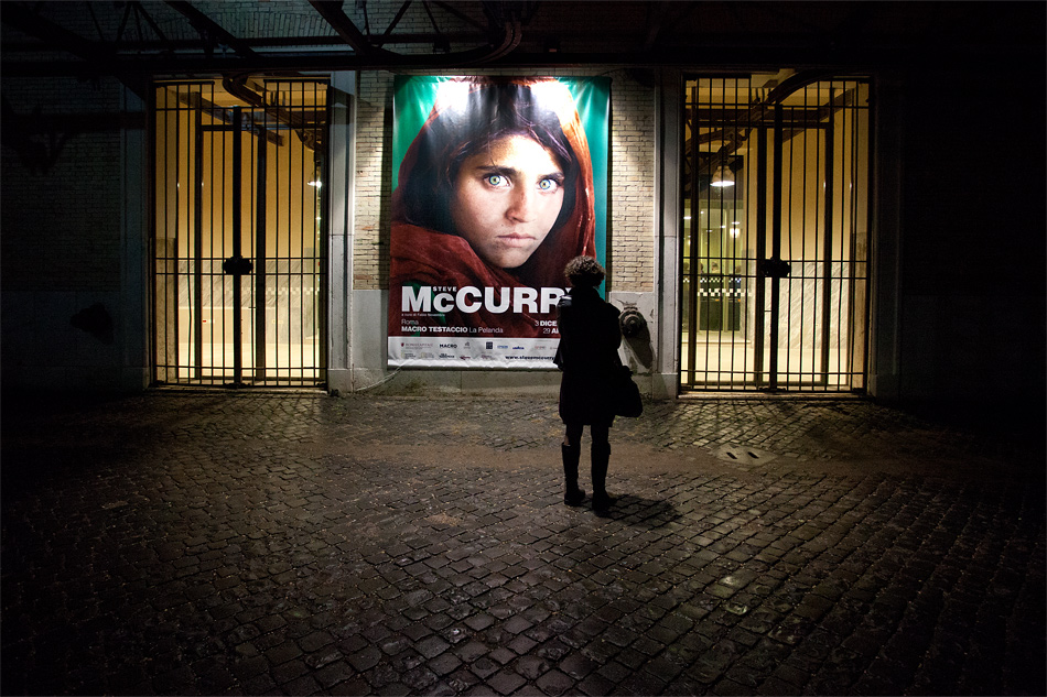 Mi pare tu abbia evitato che succedesse adoperando l'intenso ritratto di Sharbat Gula in modo da andare più in là della semplice rappresentazione: amp non c'è solo una donna che il 4 dicembre scorso guardava il manifesto, ma - complici quelle due aperture sbarrate che riprendono in contrasto gli occhi spalancati della ragazza afghana - una possibile riflessione sul se e quanto la fotografia di ritratto riesca ad avvicinarmi a una persona, o non sia piuttosto un altro diaframma superabile soltanto con l'incontro vivo e reale.