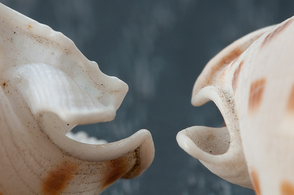In questo caso notando il profilo di queste due conchiglie ho pensato di rappresentare una conversazione con sullo sfondo il mare. Questo era il mio intento.