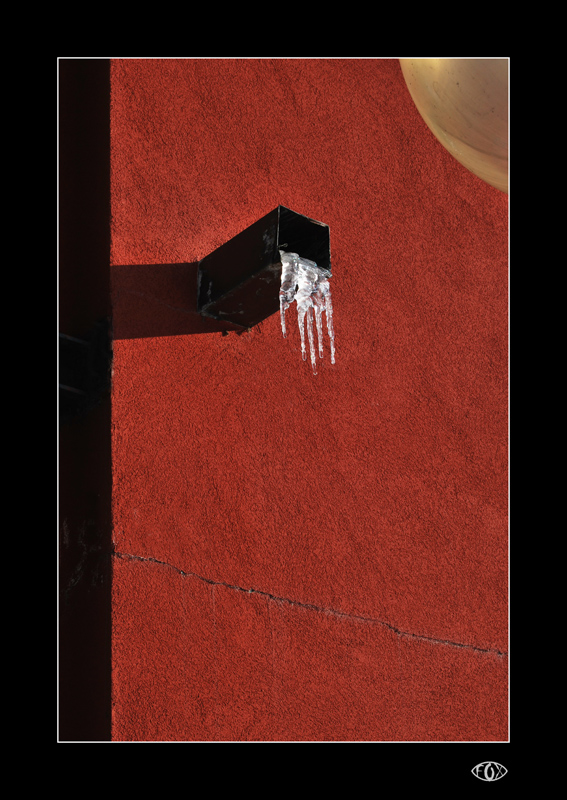 Colpisce in mezzo a questo rigore l'elemento imponderabile creato dalla natura, l'acqua ghiacciata che nello sgocciolare si ferma su cinque file, prendendo le sembianze di una mano di qualche entità atmosferica. Pensi al corpo intero a cui é attaccata, che di li a poco uscirà a prenderti...