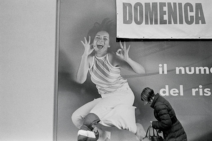 Nella lettura street non vado oltre il contrasto "allegria nel cartellone VS figure chine", e il taglio sotto mi pare brusco.